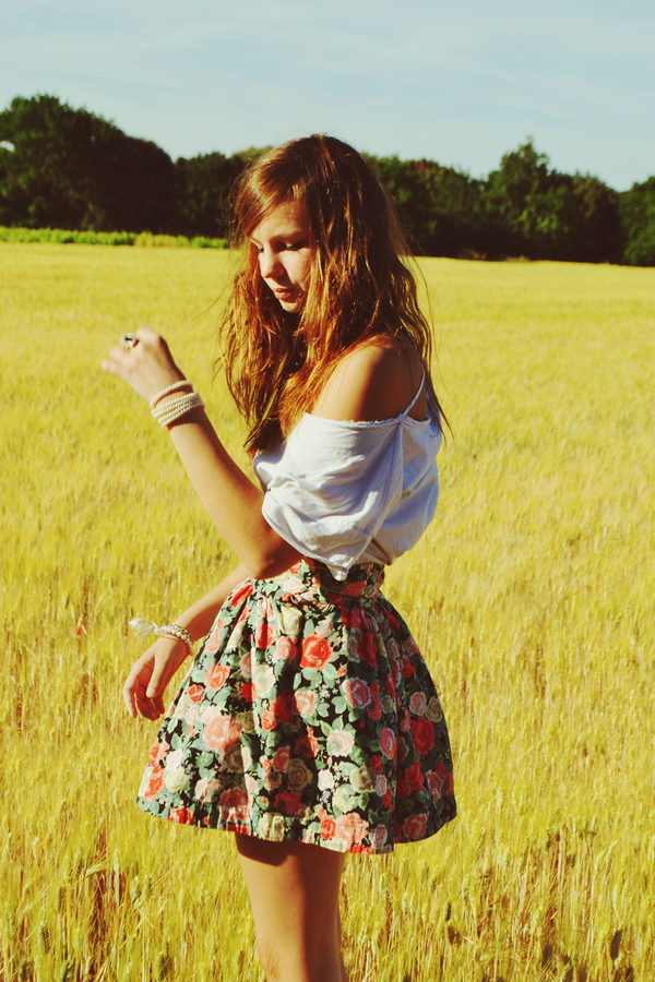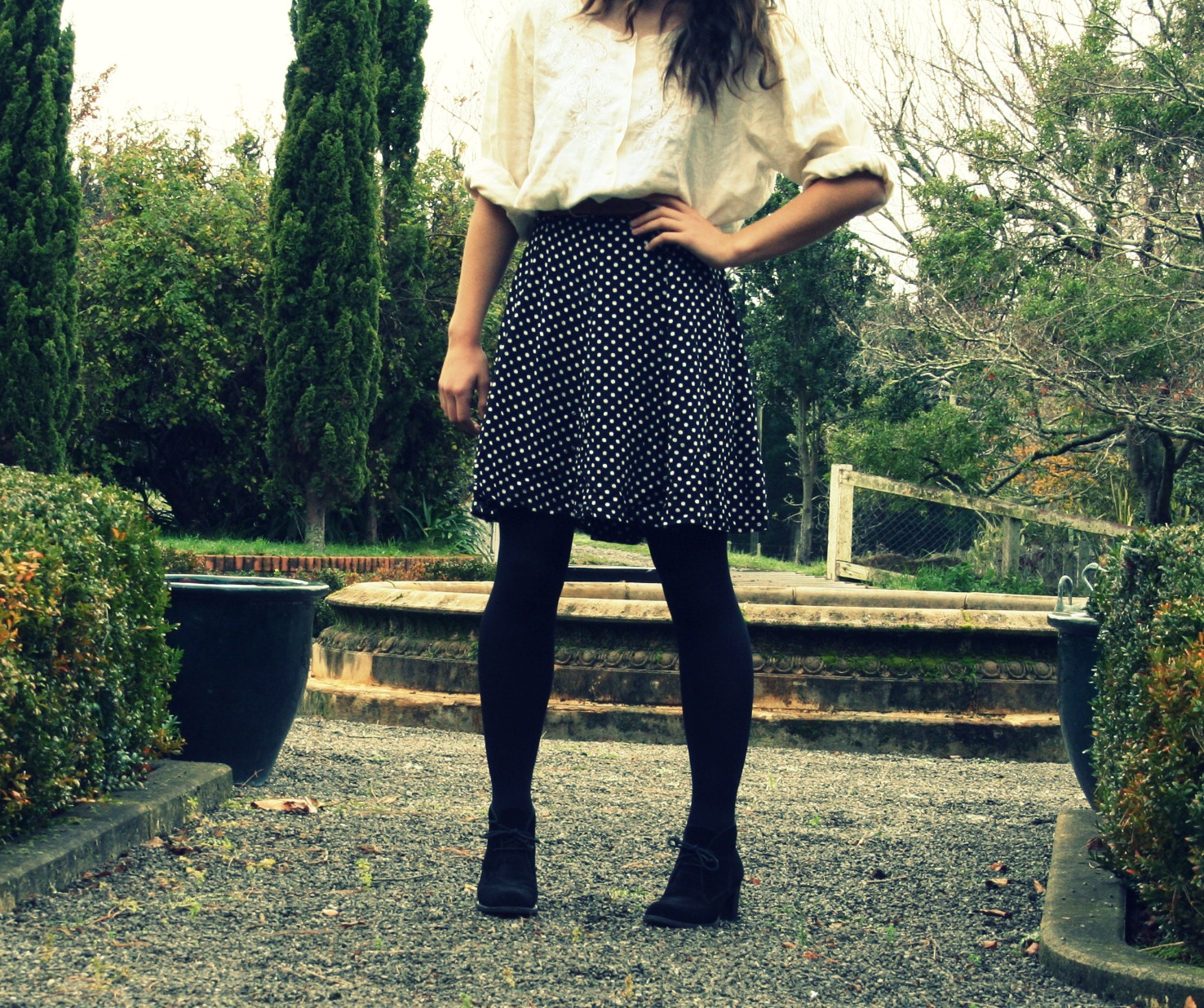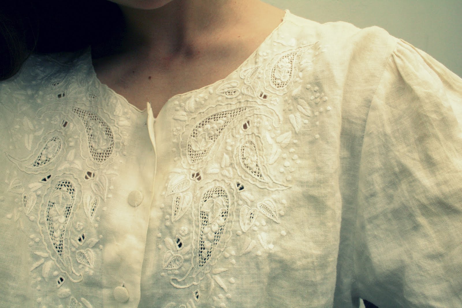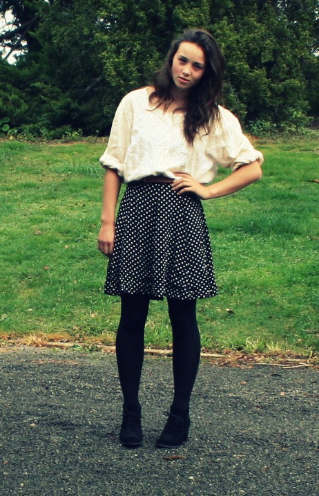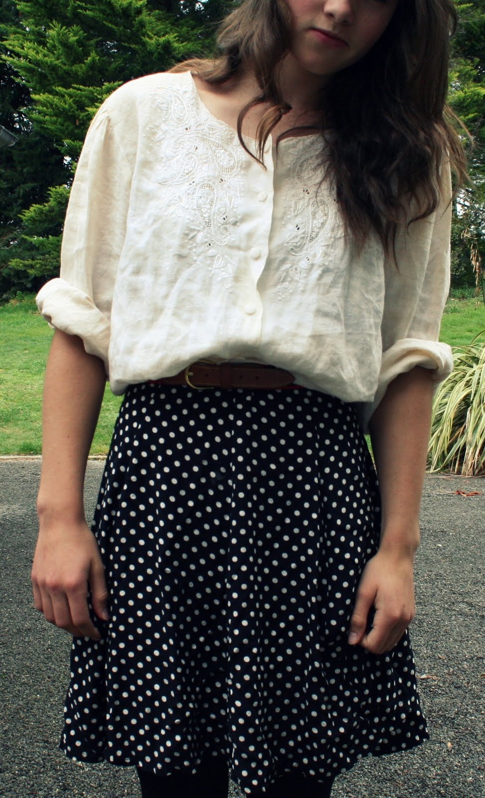 Just a few photos of an outfit I put together. Couldn't believe I'd never even thought of wearing this shirt and dress when I found it in our dress up box! I love the embroidery on the shirt and thought that the dress could not only make a lovely skirt but also a bodice with shorts, so excitied for Summer when I can actually wear shorts again without feeling cold...